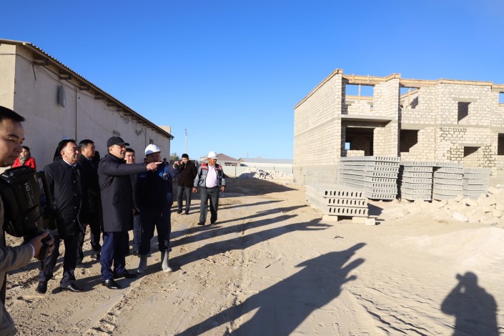 Следующим пунктом посещения стало строительство жилого комплекса "Бейбитшилик". В мае этого года в Жанаозене начали строить четыре 5-этажных дома. Сейчас идет возведение 3-го и 4-го этажей. Кроме того, заложен фундамент еще четырех 5-этажных домов. Согласно проекту, здесь построят 23 дома на 1376 квартир. Закончить строительство планируют в декабре 2022 года.