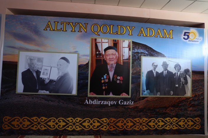 Далее глава региона принял участие в показе документального фильма "Алтын қолды адам" о ветеране-нефтянике Газизе Абдразакове. Это один из первопроходцев, стоявших у истоков узенской нефти, вписавший свое имя в историю полуострова Мангышлак. Именно во время смены мастера Газиза Абдразакова ударил первый фонтан газа в Мангистау.