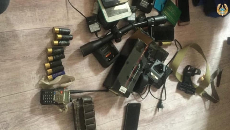 Были изъяты 434 штуки рогов сайгака, автомобили марки Nissan, "Нива Chevrolet" с российскими госномерами, мотоцикл, 5 единиц огнестрельного оружия, в том числе с оптическим прицелом, и 293 патрона разного калибра, прибор ночного видения, радиостанции, фароискатели, GPS-навигатор, 7 мобильных телефонов, 2 планшета, пилы и ножи.
