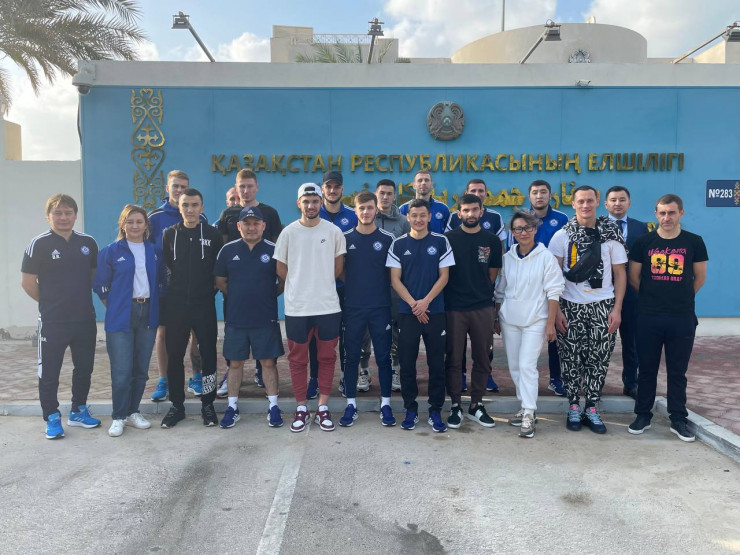 А это футболисты сборной Казахстана. Они проголосовали в Абу-Даби.