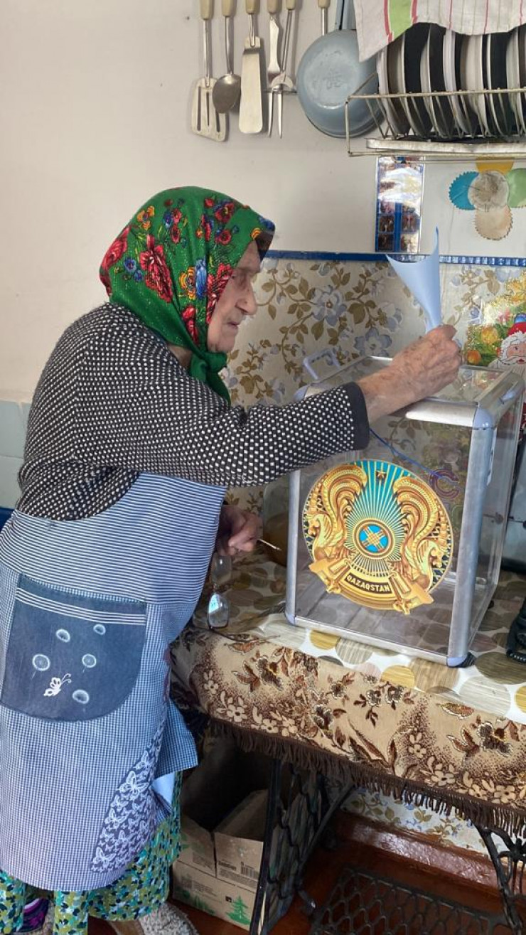 104-летняя труженица тыла Мария Рудер из села Теренколь Павлодарской области воспитала 8 приемных детей, сейчас живет с семьей внука. По ее словам, не пропускает ни одни выборы. Сегодня она проголосовала дома.