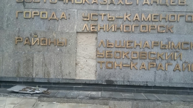 Вандалы повредили мемориал Славы в Усть-Каменогорске Фото с сайта yk-news.kz