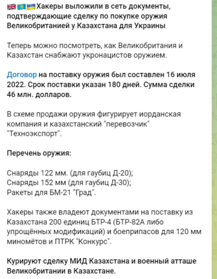 "Великобритания закупает оружие у Казахстана": в МИИР ответили на рассылку