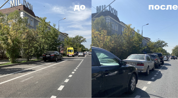 Стоит отметить, что на одном из участков для автолюбителей предусмотрели специальные заезды, которые разрешены нормами ПДД. Один расположен перед "Казпочтой", в районе пересечения с проспектом Сейфуллина.