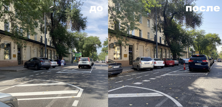 По словам автолюбителей, в августе этого года дорожники нанесли дополнительную разметку на улице Богенбай батыра. Новые линии появились на южной стороне дороги, начиная от улицы Кунаева, заканчивая на улице Масанчи.