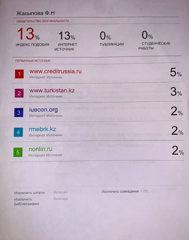 Ранее экс-директор Департамента административной работы и государственных закупок МОН Анар Каирбекова заявила, что по результатам проверки на плагиат в работе вице-министра образования и науки Фатимы Жакыповой оригинальными являются только 40 процентов диссертации.