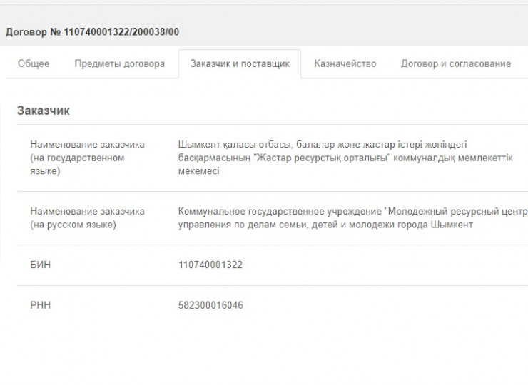 На сайте государственных закупок размещен лот на съемку короткометражных видеороликов. Заказчиком указан Молодежный ресурсный центр Управления по делам семьи, детей и молодежи Шымкента. Поставщиком услуги является Таласов Серик Туребекович. В графе "Cумма предмета по итогам закупки" значится сумма в 6 миллионов 200 тысяч тенге. Источник финансирования: "за счет бюджетных средств, за исключением средств софинансирования по правительственным внешним займам или связанным грантам".
