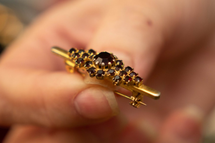 "Это английская брошь, камни при естественном освещении особо не мерцают. Гораздо лучше изделие смотрится при искусственном свете", – объясняет Наталья и прикладывает украшение к рубашке.