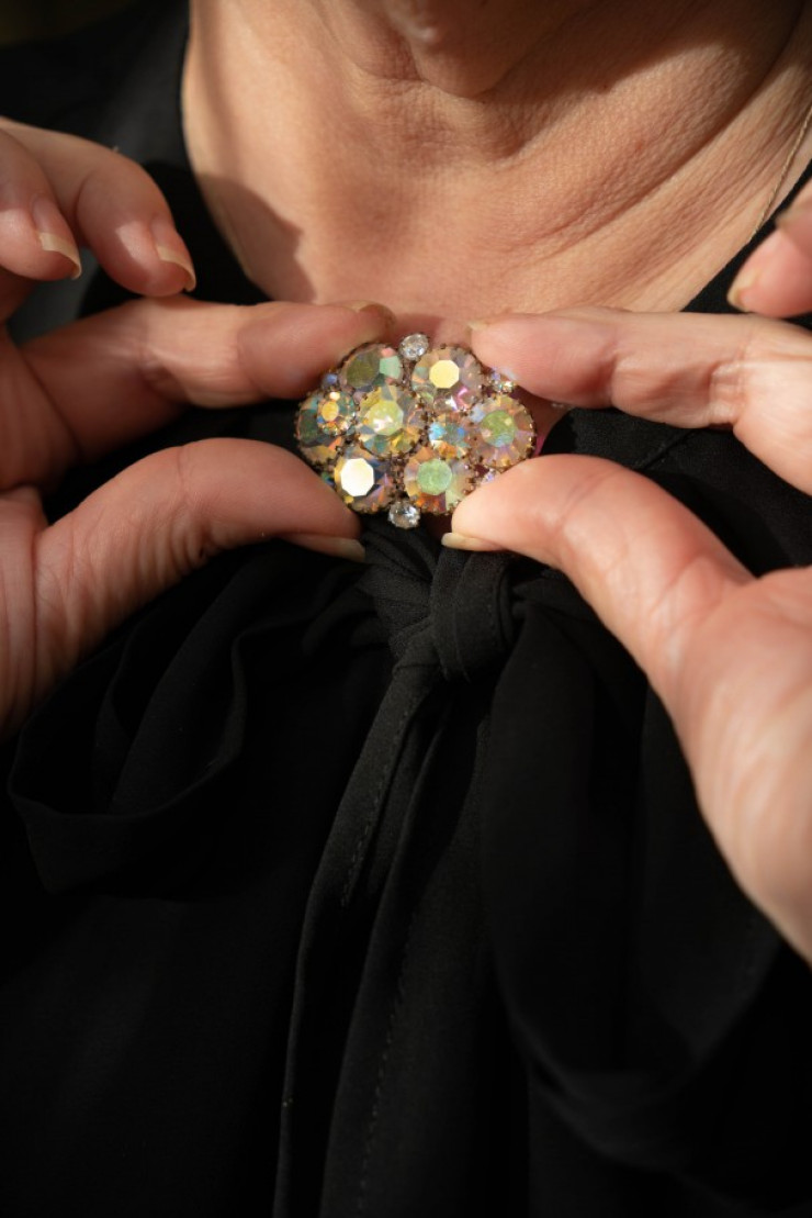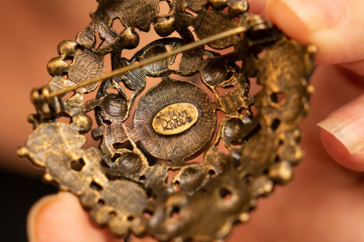 "А вот эта брошь от американской фирмы Sarah Coventry, основанной в 1949 году, они выполняли украшения в форме солнца. У меня таких несколько. А это моя любимая от Joan Rivers, или Александры Молински, дочери еврейских эмигрантов из России. Она родилась в Америке, была телеведущей, актрисой и одно время увлекалась созданием брошей", – рассказывает коллекционер.