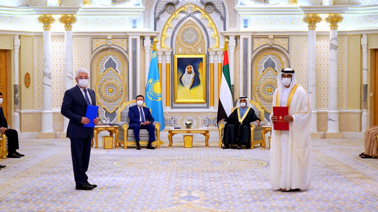 По итогам переговоров подписаны 17 межправительственных и коммерческих соглашений между РК и ОАЭ по реализации совместных проектов по строительству птицефабрик и молочно-товарных ферм, производству и переработке фруктов и грибов, сотрудничеству в отраслях ГМК и геологоразведки, созданию индустриального парка в промышленной зоне Экибастуза, туристического комплекса "Катон-Карагай" в Восточно-Казахстанской области, а также открытию в Казахстане производства компонентов к электромобилям.