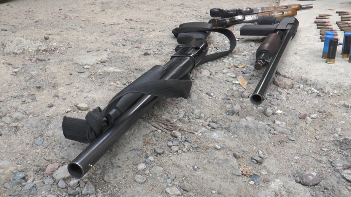 "В наше поле зрения попал гражданин Т. 1992 года рождения, проживающий в микрорайоне Думан, ранее судимый за вымогательство. В ходе задержания при личном досмотре у фигуранта был обнаружен и изъят нож, а при обыске его транспортного средства марки Audi было обнаружено и изъято два обреза охотничьего ружья 12-го калибра, карабин, гладкоствольное ружье, а также 15 патронов.