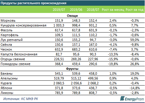 В сегменте овощей выросли лишь цены на морковь (+2,4 процента за месяц) и консервированную кукурузу (+0,5 процента за месяц). На рынке фруктов значительных изменений цен не наблюдалось.