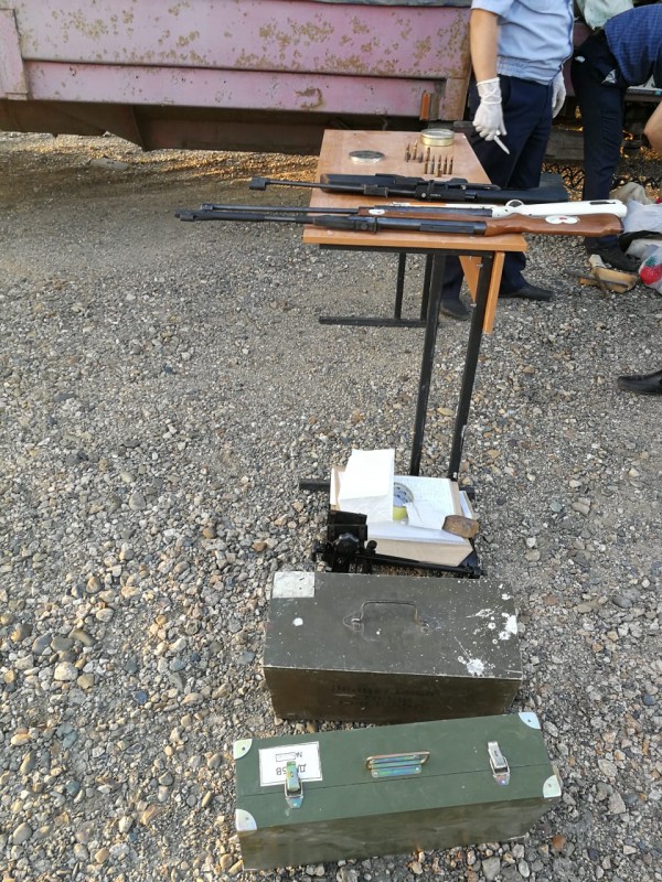 Также сообщается, что дополнительно в ходе углубленного досмотра выявлено: кастет, четыре штуки 9-миллиметровых учебных патронов, одна пуля от 9-миллиметрового, одна гильза на 7,62 миллиметра, два магазина к 7,62, пять обойм к 5,45 миллиметра, 61 штука гильз к 5,45 миллиметра, один магазин к ППШ, одна граната РГД-5, магнит от мино-поискового устройства, две возвратные пружины от РПК-74, пружинно-поршневая винтовка марки ИЖ-38, пневматическая винтовка, многозарядная марки ИЖ-61, пристрелочный станок, два ВПХР (войсковых приборов химической разведки), пять пачек индикаторных ручек, индикатор для дозиметра ИД-1, пустая гильза калибра 16 миллиметров.