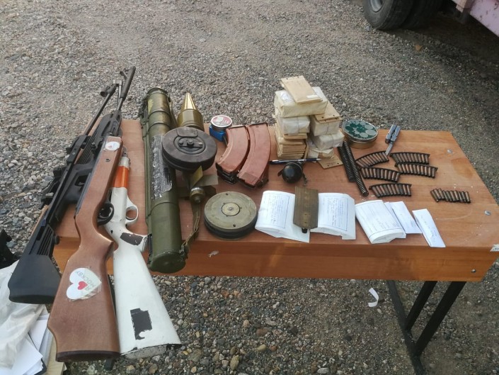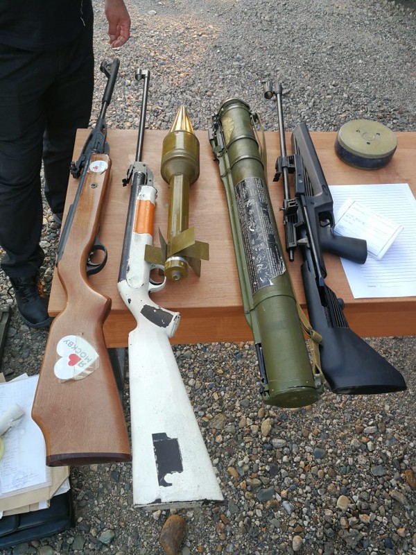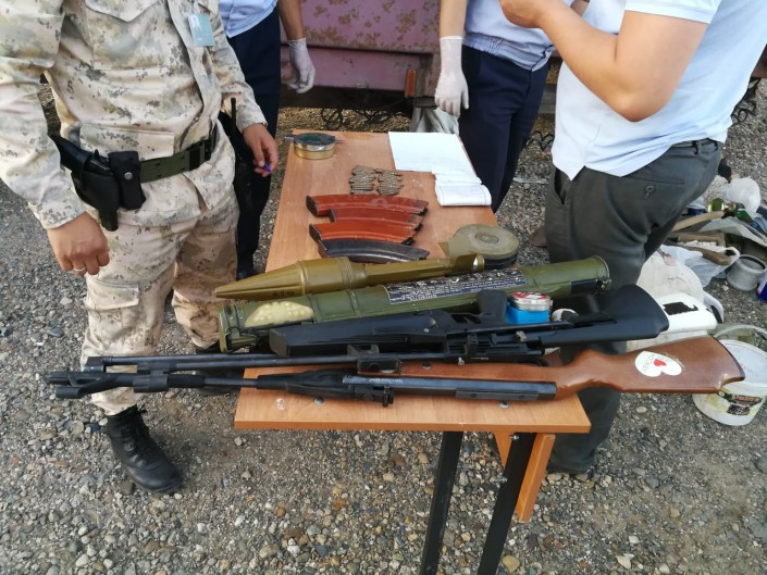 "Военнослужащими военной части № 2098 в отделении транспортно-пограничного контроля "Ауыл авто" 19 июля 2019 года в 15.30 был задержан гражданин Казахстана, следовавший из Казахстана в Россию. При досмотре автомашины в кузове среди домашних вещей были обнаружены: советская реактивная противотанковая граната - РПГ-18, выстрел РПГ-ПГ-7 (ручной противотанковый гранатомет), три магазина к АК-74, один к РПК-74, один ВПХР (войсковой прибор химической разведки), два ДП-5В (измеритель мощности дозы (рентгенометр).