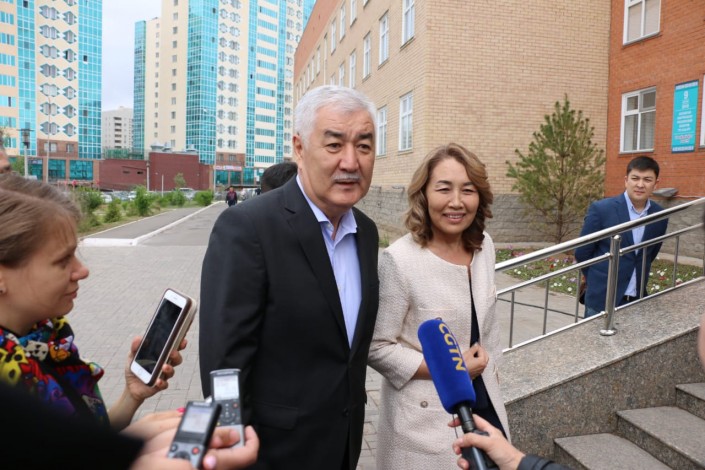 Примерно в полдень на избирательный участок прибыл Амиржан Косанов, представляющий движение "Ұлт тағдыры" ("Судьба нации"). Голосовать кандидат пришел вместе с супругой.