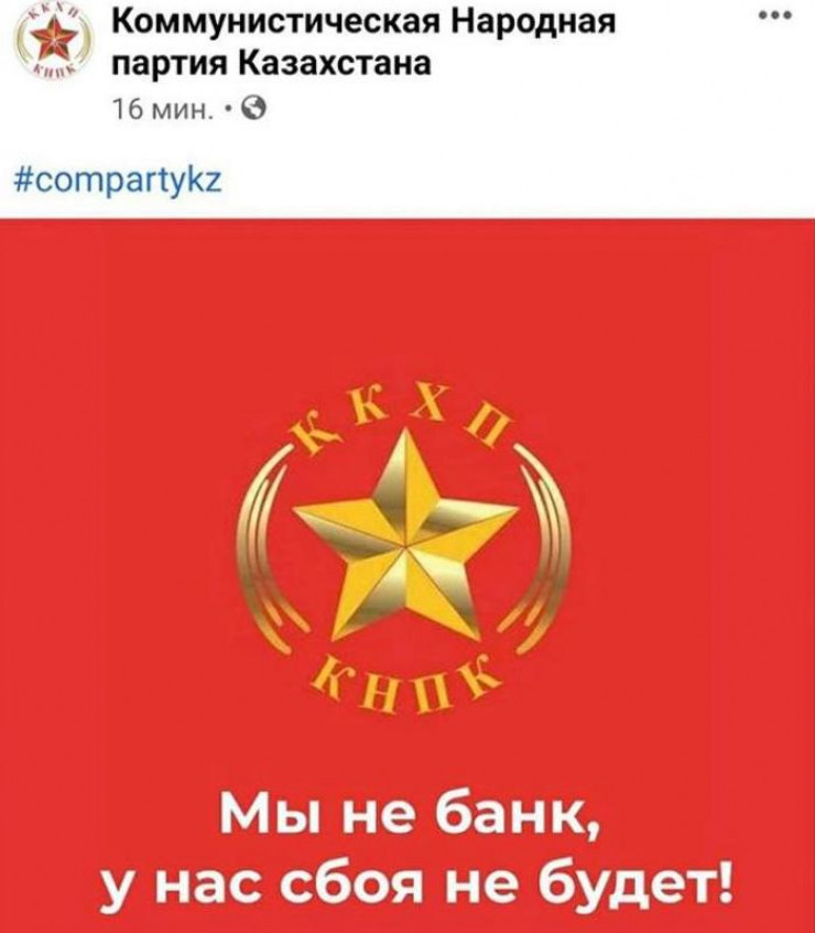 Также в стороне не осталась Коммунистическая народная партия Казахстана. На своей официальной странице в Facebook ее представители опубликовали шутку.