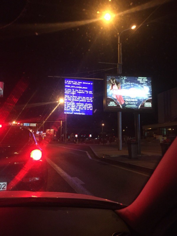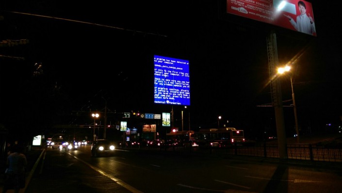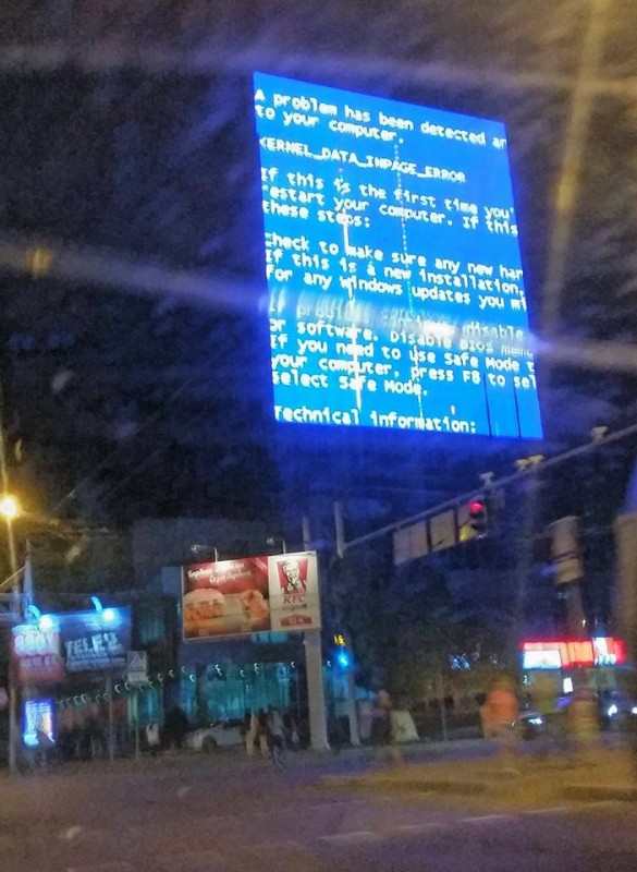 В Алматы произошел сбой системного компьютера, управляющего гигантским монитором на стене высотки в районе пересечения проспекта Абая и улицы Байтурсынова. Накануне вечером очевидцы опубликовали в социальных сетях фотографии "синего экрана смерти", знакомого каждому пользователю персональных компьютеров.