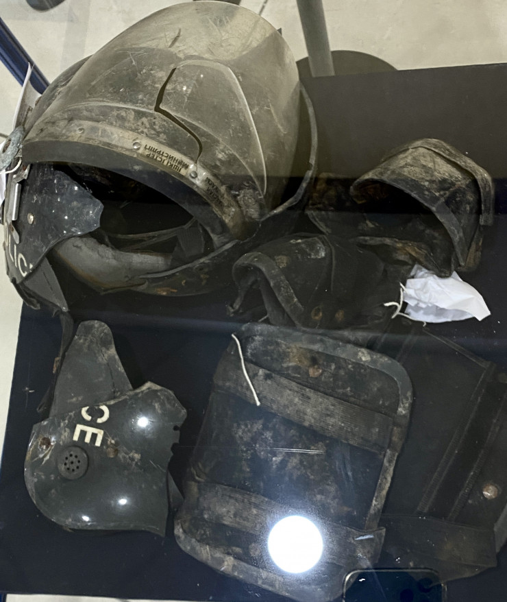 Бронепанели спецназа в Алматы. Следы от огнестрельного оружия и металлолома.
