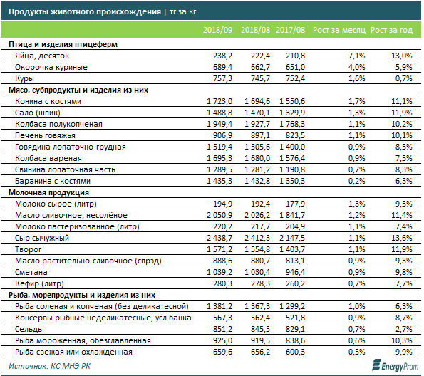 По итогам сентября в Казахстане выросли цены на продукты животного происхождения, передает корреспондент Tengrinews.kz со ссылкой на Energyprom.kz.