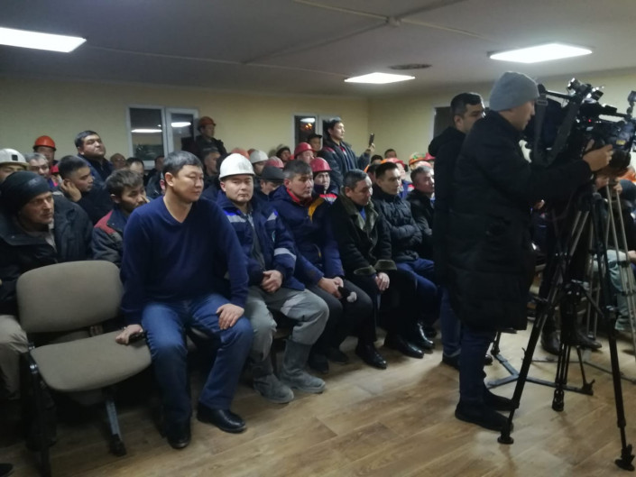 Работники "Алматыметрокурылыс" собрались у станции "Сарыарка"