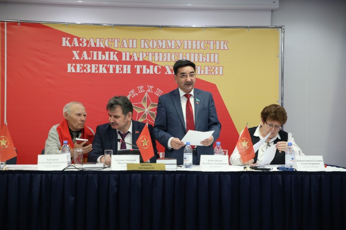 "В результате тщательного обсуждения мы выдвигаем кандидатом в президенты  Казахстана Ахметбекова Жамбыла Аужановича", - заявил секретарь ЦК КНПК Дмитрий Легкий на XIV внеочередном съезде КНПК.