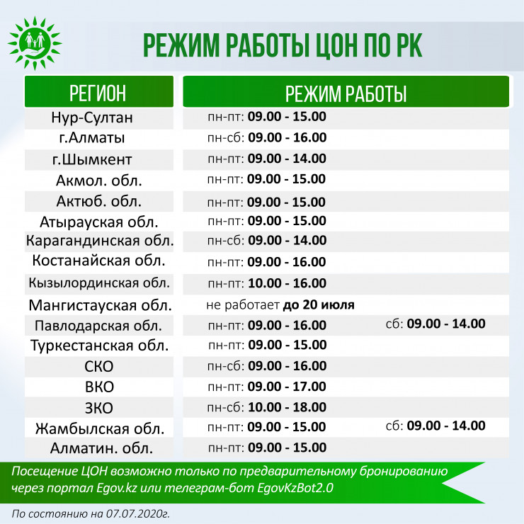 График работы ЦОНов.