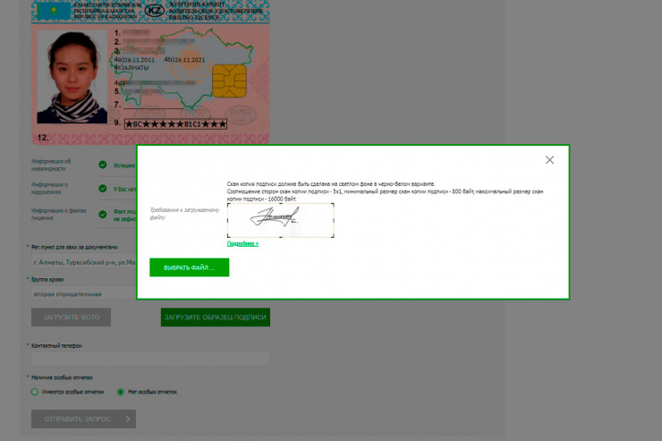 8. Уточните свой номер телефона и наличие в правах особых отметок - если вы носите очки, к примеру. После чего нажимайте на кнопку "Отправить запрос".
