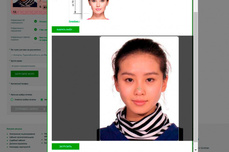 6. К заявке загрузите фотографию. Фотография должна быть цветной и четкой. Строго анфас на светлом фоне, с нейтральным выражением лица и закрытым ртом, причем лицо должно занимать около 75 процентов общей площади фотографии.