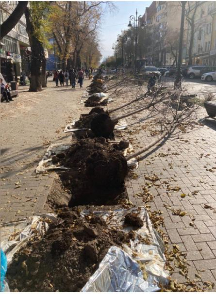 Замену деревьев на Арбате объяснили чиновники Алматы Фото:t.me/kozachkow