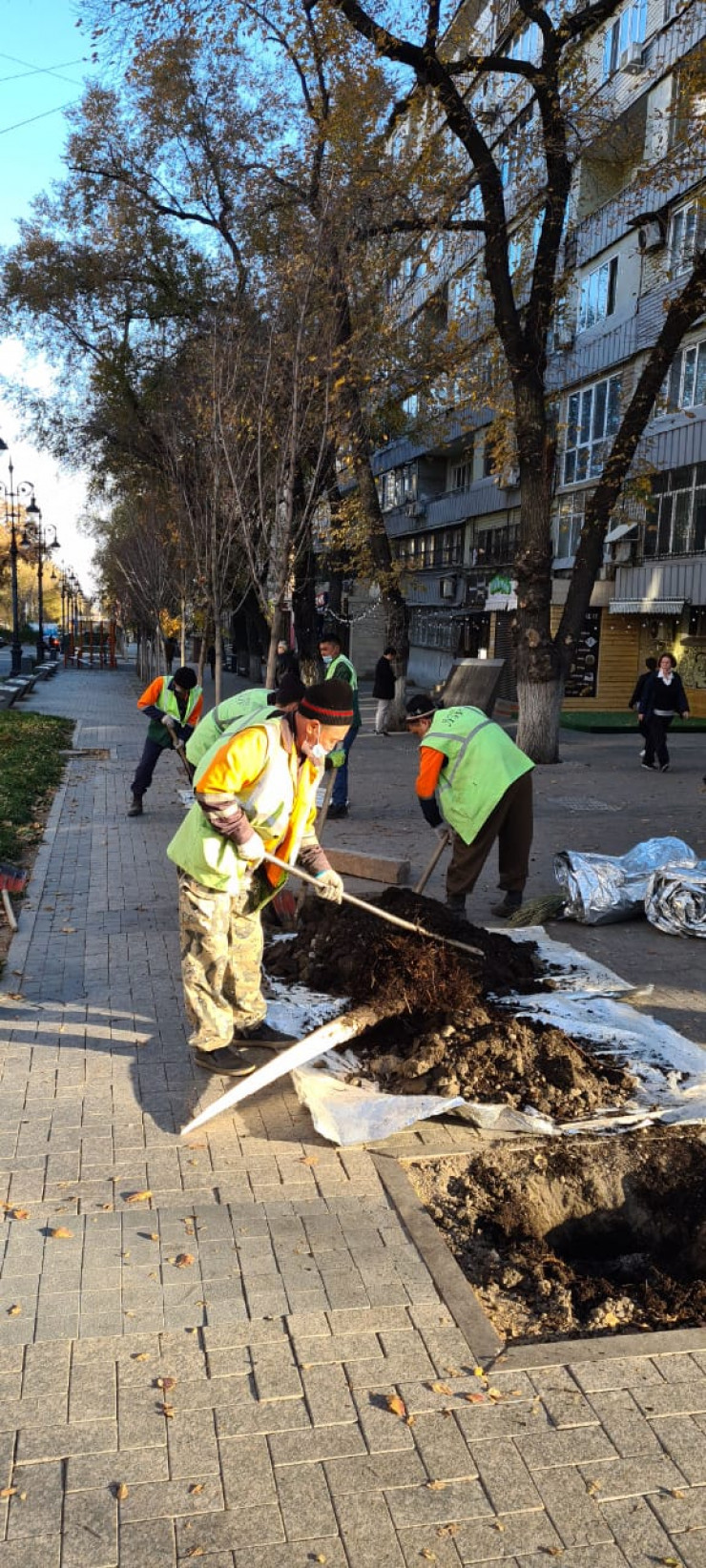 "Новая традиция в Алматы - меняются не только бордюры и плитка, но еще и деревья на Арбате. Предыдущие по 300 евро за штуку продержались три года", - написал автор публикации.