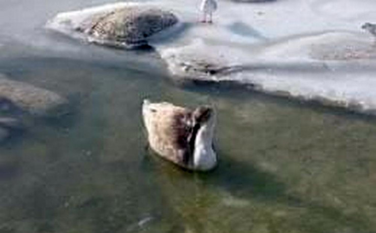 Замерзающего в Каспии лебедя засняли в Актау Фото: lada.kz