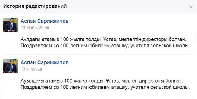 Поздравительный пост, опубликованный на днях на странице министра образования и науки Казахстана Аслана Саринжипова в Facebook, вызвал насмешки пользователей в социальных сетях.