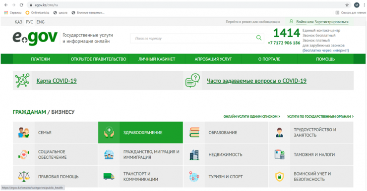 Так, чтобы получить услугу на портале eGov.kz, нужно пройти в раздел "Здравоохранение".