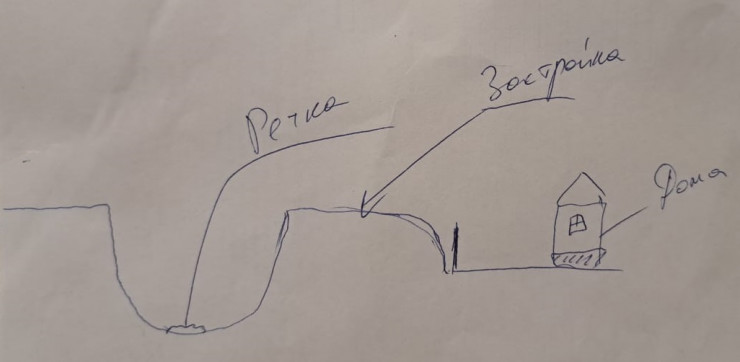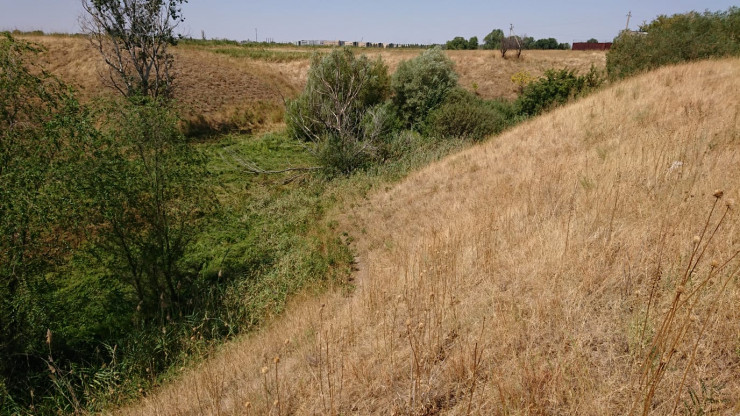 "Раньше по этому оврагу протекала река, которая впадала в небольшое озеро в лагере "Орнек", расположенном ниже нашего поселка. Однако несколько лет назад, видимо, кто-то наверху, в горах, перекрыл воду и речку вместе с озером начали сушить. И у них получилось: сейчас здесь пустой лог. Но его нельзя засыпать, это естественный рельеф, образованный природой.