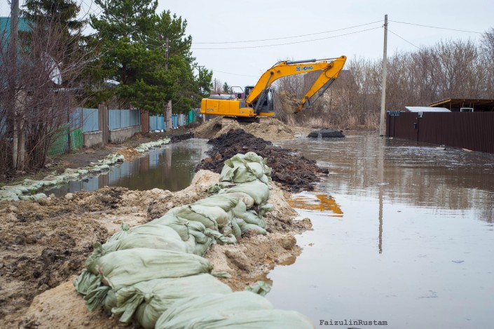 "Питанием обеспечивают, бывает тяжело с отдыхом. Остановились в школе-интернате. Отдыхаем по очереди, кто-то если сильно устал, то идут, а  остальные работают", - говорит Марат Сыздыков.  - Вчера до 4 утра работали на том берегу в селе Прибрежное, там тоже затопило, был прорыв дамбы, затопило дома. Эвакуировали население, носили мешки, укрепляли. Когда ситуация стабилизировалась, то переехали сюда, в Тепличное. С 7 утра мы грузим мешки. Занимаемся укреплением дамбы, есть угроза прорыва, чтобы вода не прошла в этот район", - говорит спасатель Марат Сыздыков.