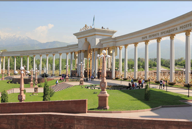 5. Входная группа и монументальный ансамбль в парке имени Первого Президента Республики Казахстан. Год постройки: 2011. Адрес: улица Дулати.