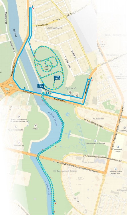 Этап бега длиною 21,1 километра состоит из трех быстрых кругов на территории Triatlon Park Astana.