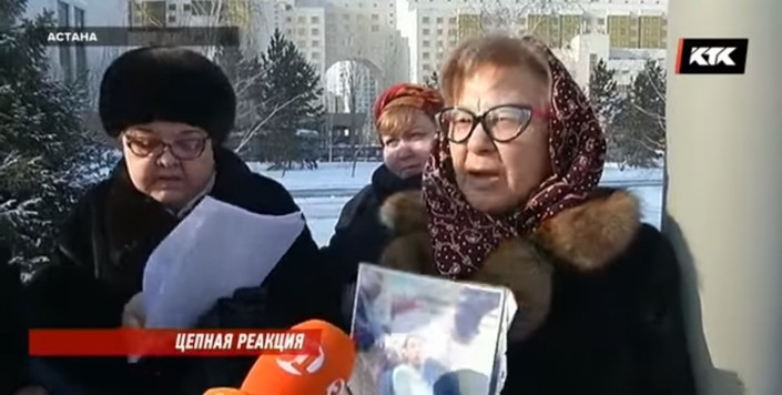 "Мы ни к Асанову не могли зайти, теперь нам препятствуют к Кожамжарову зайти. Зайдем мы к Кожмажарову. Услышит он нас. Я все сделаю… Я каждый день буду приходить, и мне никто не запретит", - говорит женщина.