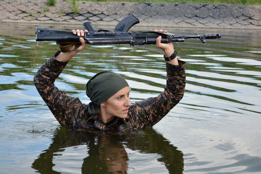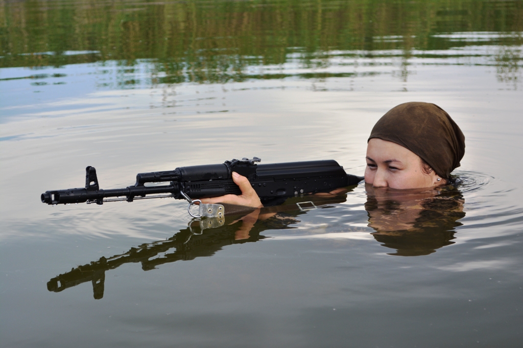 Женщинам-военнослужащим РК устроили заплыв с оружием в руках
