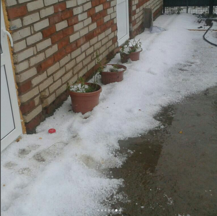 Некоторые местные жители утверждают, что это снег, однако синоптики заверили, что в Уральске выпал мелкий частый град.
