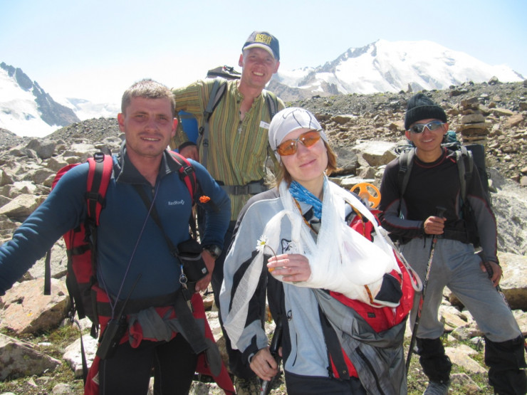 Утром мы увидели, что в районе пика Молодежного сошел ледник размером со стадион. Поднялись на перевал. Я не хотела идти. Несколько раз просила оставить меня на перевале, плохо себя чувствовала, но потом взбодрилась и пошла. Саша мне выдал новые кошки, новые ботинки", - поделилась воспоминаниями она.