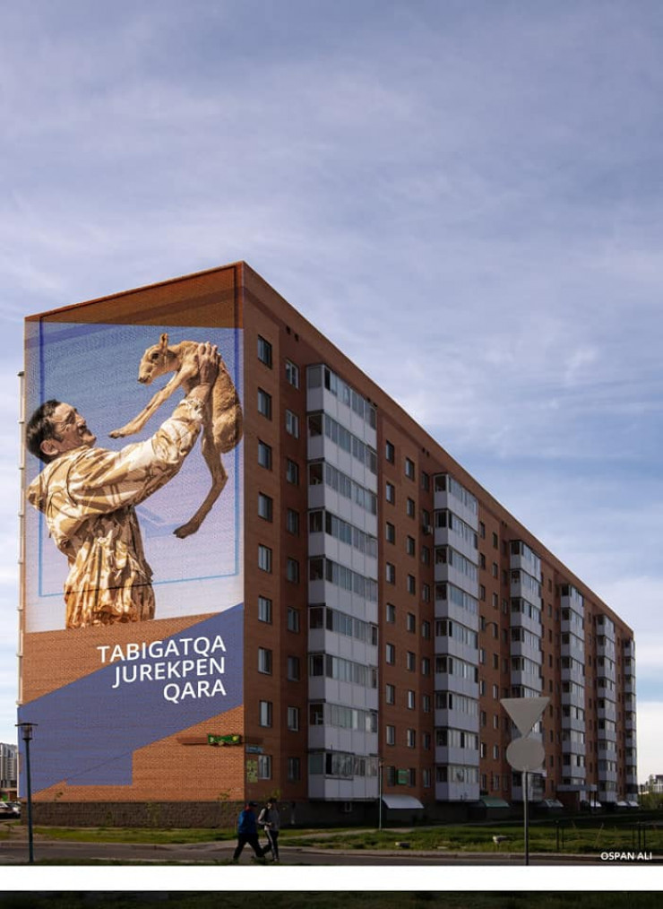 "Как-то раз я увидел очень сильный образ: сильный егерь держит в руках беззащитного детеныша сайги. Я сделал фото, но тогда не знал, что этот снимок станет популярным, и не мог я знать, что герой этого снимка, инспектор по охране животного мира Ерлан Нургалиев, будет убит браконьерами. Я и раньше относился с трепетом к сайге, ведь для степняков это животное всегда было святым, а после смерти егеря вообще проникся любовью к этим четвероногим друзьям. Именно поэтому я решил первую съемку "дочерей казахской степи" снять вместе с детенышем сайги, чтобы заодно популяризировать идею защиты этих прекрасных животных", - отметил Оспан Али.
