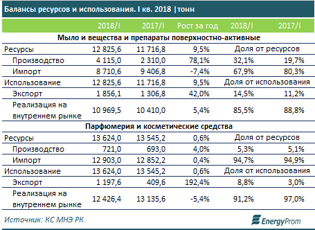 Сегмент туалетных и косметических товаров все еще нуждается в импортозамещении. По итогам первого квартала текущего года на рынке выросла доля мыла и аналогичной продукции отечественного производства - так, спрос перекрыт местными компаниями уже на 32,1 процента против 19,7 процента в аналогичном периоде годом ранее.