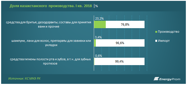 Импорт перекрывает 76,8 процента спроса на дезодоранты, средства для бритья, составы для принятия ванны и прочие подобные товары.