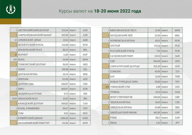 Национальный банк Казахстана опубликовал официальный курс доллара к тенге на 18-20 июня, передает корреспондент Tengrinews.kz.