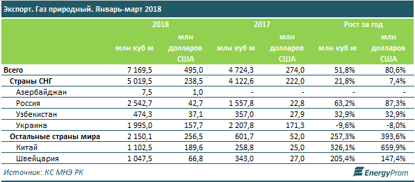 Как сообщается, экспорт природного газа в первом квартале текущего года составил сразу 7,2 миллиарда кубометров и 495 миллионов долларов в стоимостном выражении (+80,6 процента). Рост экспортных поставок в кубах составил 51,8 процента год-к-году.