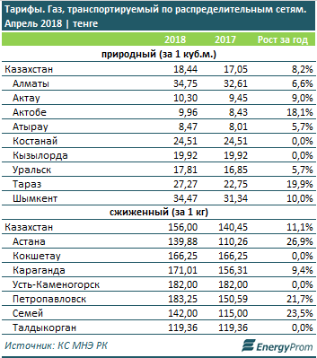 На внутреннем рынке РК газ, транспортируемый по распределительным сетям, подорожал для казахстанцев год-к-году на 8,2 процента за кубометр природного газа (до 18,4 тенге в среднем по РК) и на 11,1 процента за килограмм сжиженного газа (до 156 тенге).