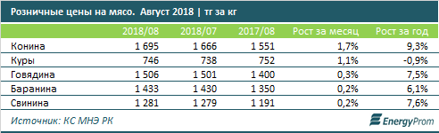 На 1,1 процента, до 745,7 тенге за килограмм, подорожали куры. Говядина, баранина и свинина подорожали за месяц на 0,2-0,3 процента.