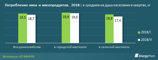 В Казахстане за второй квартал потребление мясной продукции в городах сократилось на 2 процента. В сельской местности мясо стали меньше потреблять на 8 процентов, сообщает Enegryprom.kz.