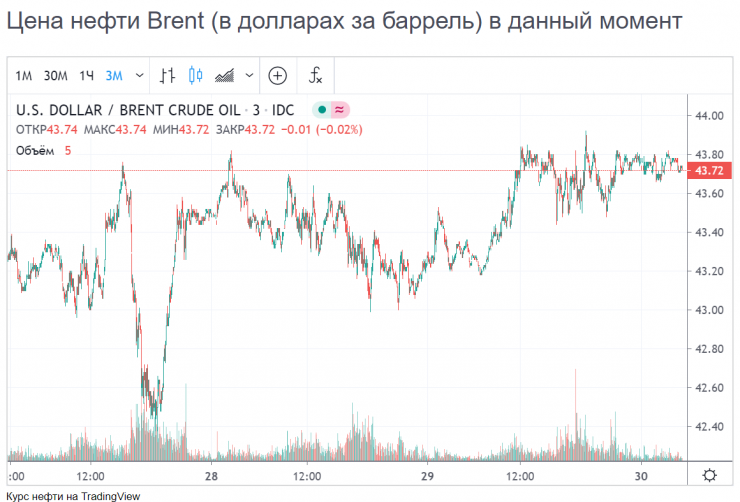 Отметим, сейчас стоимость нефти марки Brent колеблется на уровне 43,7 доллара за баррель. Цена выросла на 1,5 доллара с начала недели.